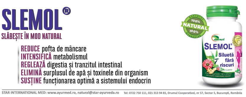Și de aceasta dată, specialiștii Ayurmed® au studiat și analizat îndeaproape mecanismele plantelor medicinale, eficiența și siguranța acestora pe termen îndelungat. Așa a aparut produsul SLEMOL® - un supliment alimentar destinat scăderii în greutate și ulterior menținerii greutății corporale, dar fără să ne priveze corpul de nutrienții atât de importanți pentru sănătate.