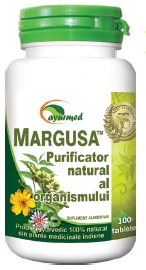 Suplimentul alimentar MARGUSA este o asociere de plante medicinale ayurvedice cunoscute pentru proprietăţile lor detoxifiante, care susţin procesele naturale de eliminare a toxinelor și menținerea tonusului general al organismului în condiții de suprasolicitare fizică și psihică. MARGUSA ajută la îmbunătățirea circulaţiei sanguine, la mobilizarea de la nivelul ficatului și altor organe a toxinelor în sânge și eliminarea lor la nivelul rinichilor prin urină. Susține funcționarea normală a sistemului digestiv, protejează mucoasa gastro-intestinală și normalizează tranzitul intestinal. Fitonutrienții din plante neutralizează radicalii liberi, asigură protecția celulelor de stresul oxidativ și de procesele degenerative.