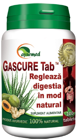 Gascure tablete este un produs natural din plante medicinale indiene ayurvedice, care susțin funcționarea fiziologică a sistemului gastro-intestinal asigurând o digestie și un tranzit intestinal normal permițând, astfel restabilirea frecventei și consistenței scaunelor,  eliminarea din intestine a gazelor și toxinelor provenite dintr-o digestie deficitara. Menținerea unui tranzit intestinal normal, susține procesul natural de detoxifiere prin eliminarea la nivelul colonului a produselor de digestie si a toxinelor. Complexul de fitonutrienți din plantele aflate în compoziția Gascure tablete asigură o digestie normală prin normalizarea acidității gastrice, a secreției și funcționarii enzimelor digestive, protecția mucoasei gastrice și echilibrul florei intestinale. Digestia gastrică este susținută de aportul de papaină, enzima implicată în digestia proteinelor la nivelul stomacului. Menținerea funcționarii normale a sistemului digestiv susține apetitul și absorbția substanțelor nutritive din tubul digestiv contribuind astfel la menținerea funcțiilor fiziologice ale ficatului și la sănătatea și vitalitatea întregului organism.