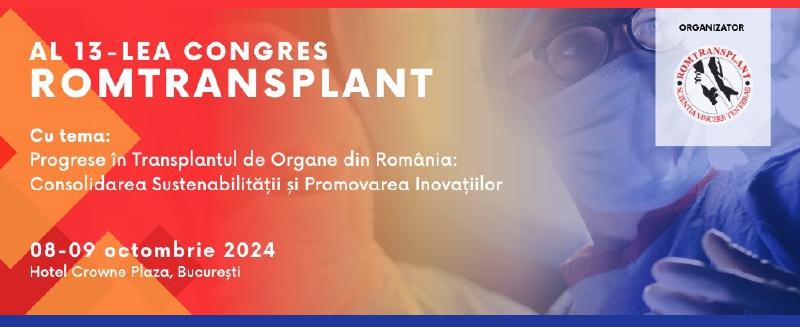 La conferința de presă susținută în 8 octombrie a.c., cu ocazia celui de-al 13-lea Congres Romtransplant, ce are loc în perioada 8 - 9 octombrie 2024 la Hotelul Crowne Plaza din București, echipa de conducere a Asociației Romtransplant a evidențiat importanța acestui eveniment pentru specialiștii din România, atât ca mesaj științific, cât și ca alăturare cu Congresul Internațional DCD & Consensus, organizatde Societatea Europeană de Transplant (ESOT) înacelașiloc,între10- 12 octombrie2024.