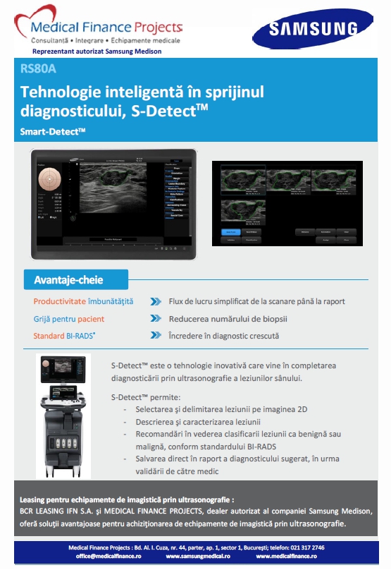 BCR LEASING IFN S.A. şi MEDICAL FINANCE PROJECTS, dealer autorizat al companiei Samsung Medison, oferă soluţii avantajoase pentru achiziţionarea de echipamente de imagistică prin ultrasonografie.