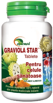 Să îţi doreşti să fii sănătos este o parte din sănătate, zicea Seneca. Să avem grijă de sănătatea noastră şi să nu uităm că, la nevoie, natura ne oferă tot sprijinul. 100% natural, Graviola Star™, noul supliment alimentar produs de Star Internaţional Med, susține sănătatea organismului prin protejarea acestuia la nivel celular. În compoziţia unică a tabletelor de Graviola Star™ se găsesc Annona muricata (Graviola) şi Curcuma longa (Turmeric) - două plante ale căror proprietăți biologice continuă să uimească specialiştii şi să dea speranţe medicinii moderne.