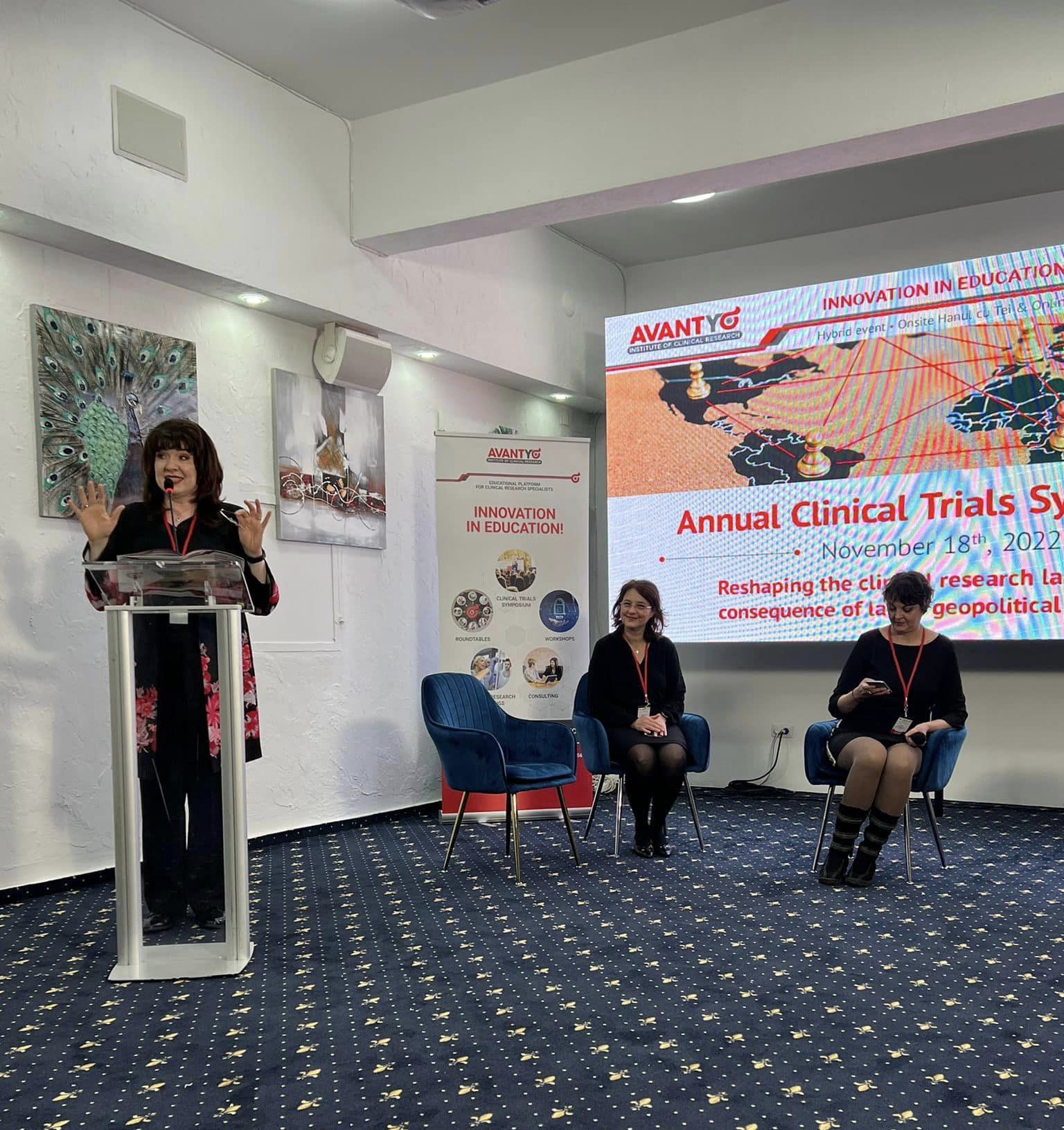 Simpozionul Anual de Studii Clinice, ediția a IV-a, organizat de AVANTYO Institute of Clinical Research, sub patronajul Federației Europene CRO (EUCROF) și Asociația Companiilor Producătoare de Studii Clinice din România (ACCSCR) a avut loc pe 18 noiembrie, în format hibrid, atât cu prezență în sala de conferințe Hanul cu Tei din București, cât și online.