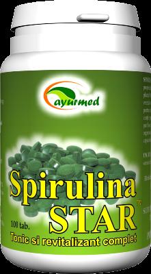 Supliment alimentar natural 100%, sursă vegetală de proteine care furnizează organismului toţi aminoacizii esenţiali, Spirulina Star, este un produs unic ce reuneşte proprietăţile deosebite ale algei Spirulina Platensis şi ale plantei Withania Somnifera.