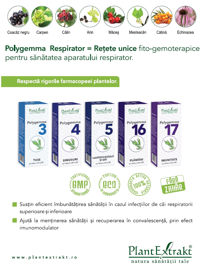 În această toamnă vă propun câteva preparate naturale din gama Polygemma, combinaţii de extracte gemoterapice, care pot susține organismul pentru a face față situațiilor de boală și și-au dovedit eficiența în peste 10 ani de prezență pe piața