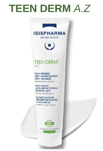 Un astfel de produs dermato-cosmetic este TEEN DERM® A.Z, formulă inovatoare a Laboratoarelor ISISPHARMA DERMATOLOGIE, din Franța, dezvoltat special pentru tratarea pielii inflamate și a semnelor post-acneice.