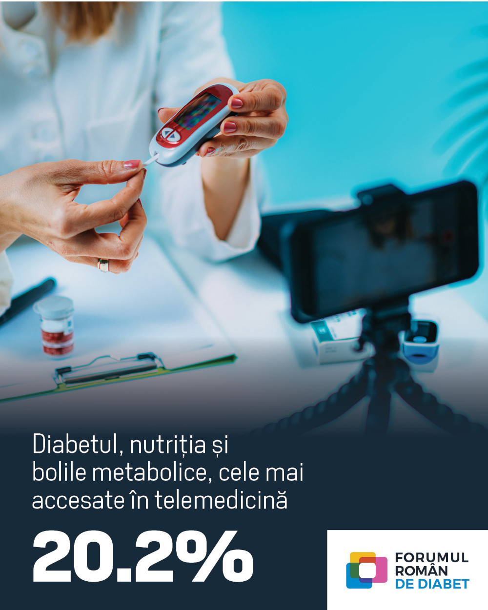 Un studiu al Consiliului Concurenței publicat recent arată că în perioada 2020 - 2022 cele mai multe teleconsultații au fost întâlnite în specialitățile diabet zaharat, nutriție și boli metabolice, unde circa 1 din 5 consultații a fost realizată la distanță. Astfel, consultațiile efectuate în regim de telemedicină pentru pacienții cu diabet zaharat au reprezentat 20,2% din totalul consultațiilor anuale.