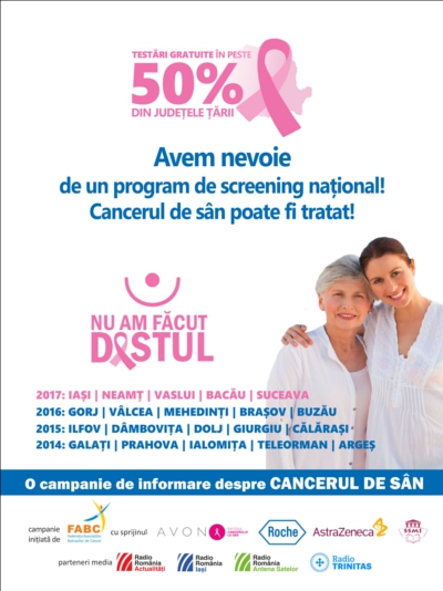 În lunile octombrie și noiembrie, FABC, cu sprijinul Roche și AstraZeneca și cu ajutorul voluntarilor de la Societatea Studenților Mediciniști din Iași (SSMI), își propune să convingă cât mai multe femei din zonele rurale și nu numai, să meargă constant la un control de specialitate, astfel încât să poată preveni instalarea bolii și, atunci unde este cazul, să înceapă tratamentul la timp, înainte să fie prea târziu.