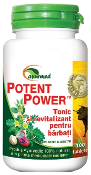 POTENT POWER este un produs 100% natural, din plante medicinale ayurvedice, cu un conținut bogat de fitonutrienti recunoscuți pentru proprietățile lor privind menținerea sănătății și funcțiilor sexuale normale. Sunt susținute metabolismul, circulația sanguină, forța și masa musculara, echilibrul hormonal și sexual. Combinația de plante din POTENT POWER, este recunoscută pentru efectele sale de susținere a sănătății prostatei, sistemului urinar, libidoului, fertilității și performantelor sexuale masculine în condiții de stres și suprasolicitare intelectuala și fizică. Este un adaptogen care susține structurile nervoase, sistemul imunitar, sistemul antioxidant endogen, crescând rezistența organismului la condițiile de mediu și încetinește îmbătrânirea.