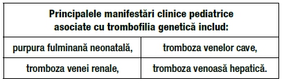 Deficiența completă de proteină C sau S (indivizi homozigoți) determină purpura fulminană neonatală și coagularea intravasculară diseminată cu o incidență de aproximativ 1 în 16.000-360.000. Unele studii asociază embolia pulmonară și paralizia cerebrală cu trombofiliile genetice.