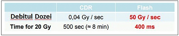 Debitul dozei la iradierea convențională (CDR) și cea de tip FLASH