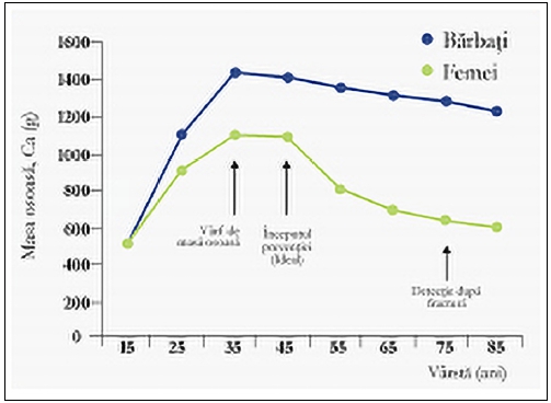 În perioada pubertăţii şi a adolescenţei ţesuturile osoase cresc şi se dezvoltă mult mai intens. După ce se obţine masa osoasă maximă, la finalul primilor 20 de ani ai vieţii, o vreme aceasta se menţine în platou, apoi începe să apară treptat, cu vârsta, pierderea osoasă. Probabilitatea de apariţie a osteoporozei în cursul vieţii este strâns legată de cantitatea de ţesut osos format înainte de vârsta de 30 ani. De aici şi ideea că masa osoasă de bună calitate achiziţionată în prima parte a vieţii determină reducerea riscului de osteoporoză în a doua parte a vieţii.