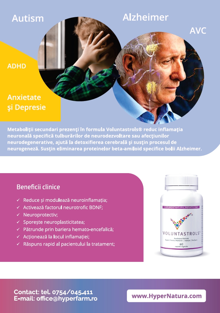 Studiile demonstrează că modularea răspunsului inflamator de către fitomolecule naturale, precum polifenolii din Voluntastrols® exercită un rol important în prevenirea și ameliorarea neuroinflamației asociată autismului, ADHD, depresiei, scăderii rezilienței psihice și bolilor neurodegenerative.