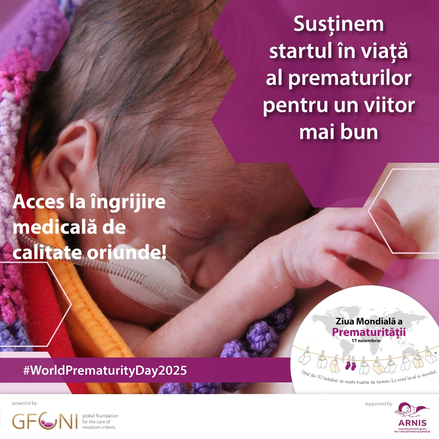 Pe 17 noiembrie 2025, legiferată ca Zi Națională a Copilului Prematur din România, ARNIS și Asociația de Neonatologie din România, în parteneriat cu Administrația Prezidențială și Ministerul Sănătății, organizează, la Palatul Cotroceni, o Masă Rotundă dedicată inițierii unui Parteneriat intersectorial pentru elaborarea planului de acțiune privind garantarea drepturilor la viață, sănătate și dezvoltare pentru nou-născuții cu risc.