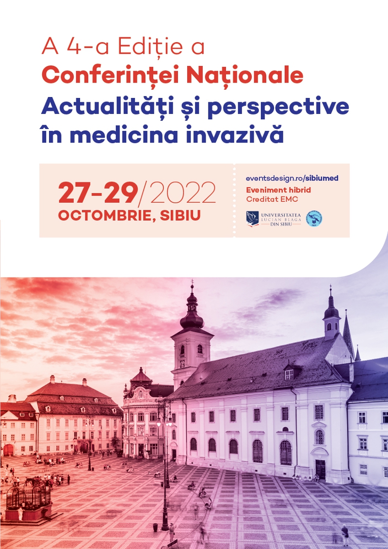 Vă invităm la Conferinţa Naţională ”Actualităţi şi perspective în medicina invazivă” ajunsă la a patra ediție, în perioada 27 – 29 Octombrie 2022, la Sibiu.