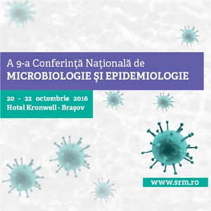 A 9-a Conferință Națională de Microbiologie și Epidemiologie va avea loc în perioada 20-22 octombrie 2016, la Hotel Kronwell, Brașov. Evenimentul este organizat științific de Societatea Română de Microbiologie, în parteneriat cu Societatea Română de Epidemiologie.