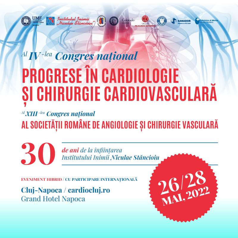 A IV-a ediție a Congresului “Progrese în Cardiologie și Chirurgie Cardiovasculară” împreună cu al XIII-lea Congres Național al Societății Române de Angiologie și Chirurgie Vasculară, 2022