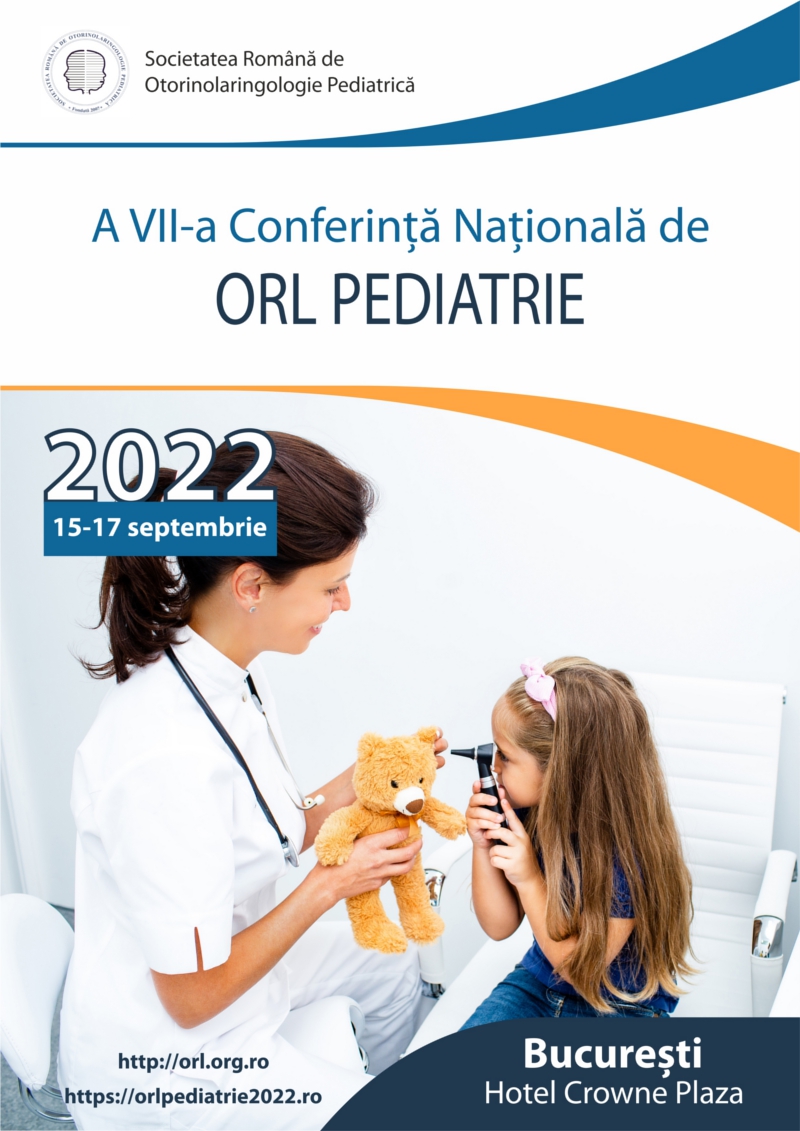 Vă invit să participați la cea de-a 7-a CONFERINȚĂ NAȚIONALĂ de ORL-PEDIATRIE, care se va desfășura în perioada 15-17 Septembrie 2022, la București.