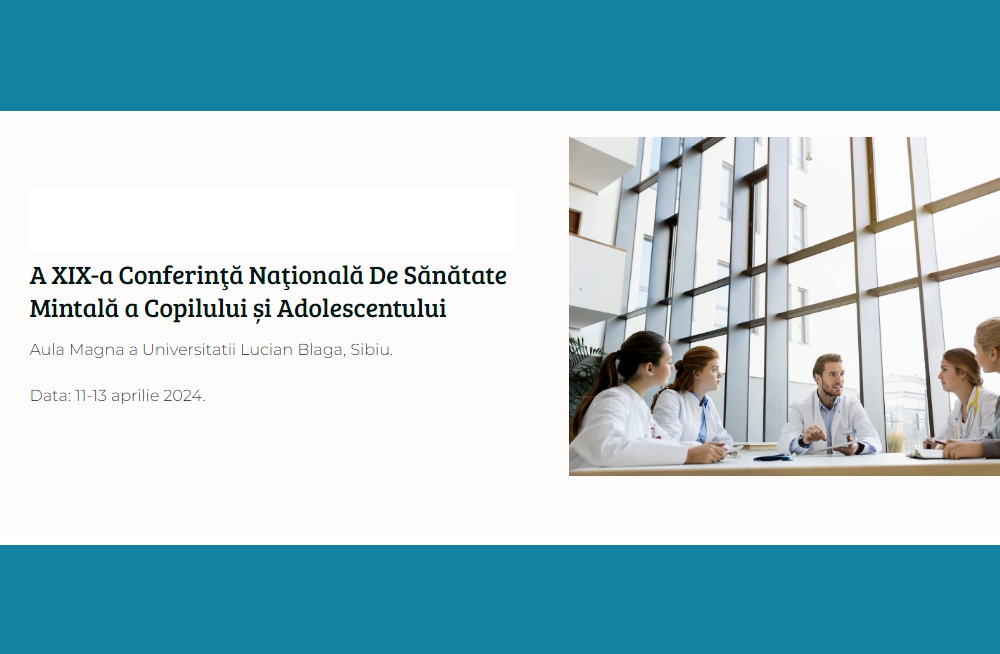 Asociația Română de Psihiatrie a Copilului și Adolescentului și Profesii Asociate dorește să vă invite la cea de-a XIX-a Conferință Națională de Sănătate Mintală a Copilului și Adolescentului – eveniment cu participare internațională care va avea loc în perioada 11-13 aprilie 2024, desfășurată la Aula Magna a Universitatii Lucian Blaga, Sibiu.