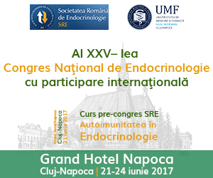 Avem privilegiul şi deosebita plăcere să vă invităm la a XXV-a ediţie a Congresului Naţional de Endocrinologie cu participare internaţională, ale cărui lucrări vor fi organizate sub egida Societăţii Române de Endocrinologie şi a Universităţii de Medicină şi Farmacie “Iuliu Haţieganu” la Cluj-Napoca, Grand Hotel Napoca, în perioada 21 – 24 iunie 2017.