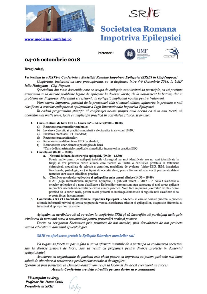 A XXVI - a Conferinta a Societatii Romane Impotriva Epilepsiei, Cluj-Napoca