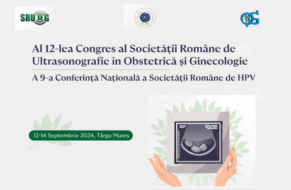 Societatea Română de Ultrasonografie în Obstetrică și Ginecologie are onoarea de a vă invita, alături de profesioniștii din domeniu, la Al 12-lea Congres al Societății Române de Ultrasonografie în Obstetrică și Ginecologie, ce se va desfășura în paralel cu A 9-a Conferință Națională a Societății Române de HPV, acestea vor avea loc în perioada 12-14 Septembrie 2024, la Hotel Imperial Inn din Târgu Mureș.