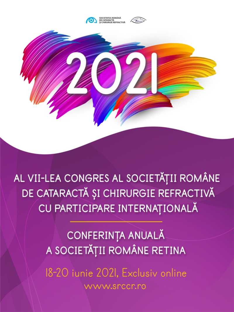 Așadar, avem plăcerea de a vă invita să participați la al VII-lea Congres al Societății Române de Cataractă și Chirurgie Refractivă și Conferința Anuală a Societății Române Retina, ce va avea loc în perioada 18-20 iunie 2021, în format virtual.