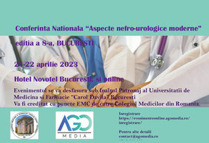 Perioada: 21-22 aprilie 2023, Novotel City Center Bucuresti si OnlineAGOMedia va invita sa participati la Conferinta Nationala “Aspecte nefro-urologice moderne”, editia a 8-a ce va avea loc in peri...