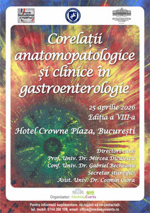 Perioada: 25 aprilie 2026, Hotel Crowne Plaza, BucureștiAvem plăcerea să vă invităm să participați la cea de-a opta ediție a cursului „Corelații anatomopatologice și clinice în gastroenterologie”, ...