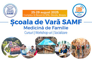 Data: 25-29 august 2025 (Luni-Vineri)Loc desfasurare: Complex Q Resort & SPA, Sacele, Brasov Societatea Academică de Medicina Familiei (SAMF) are plăcerea de a anunța organizarea unei noi e...