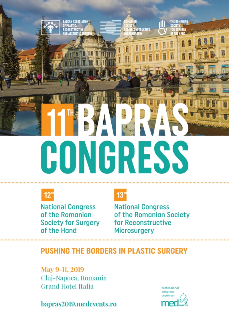 In the wish to continue the tradition of organizing very successfull congresses, the Romanian plastic surgeons, hand surgeons and microsurgeons are honored to invite all the plastic surgeons from the Balkan area, and also from all over the world, to attend the 11th BAPRAS (BASPRAS) Congress, which will be organized in Cluj Napoca, Romania, between May 9-11, 2019.