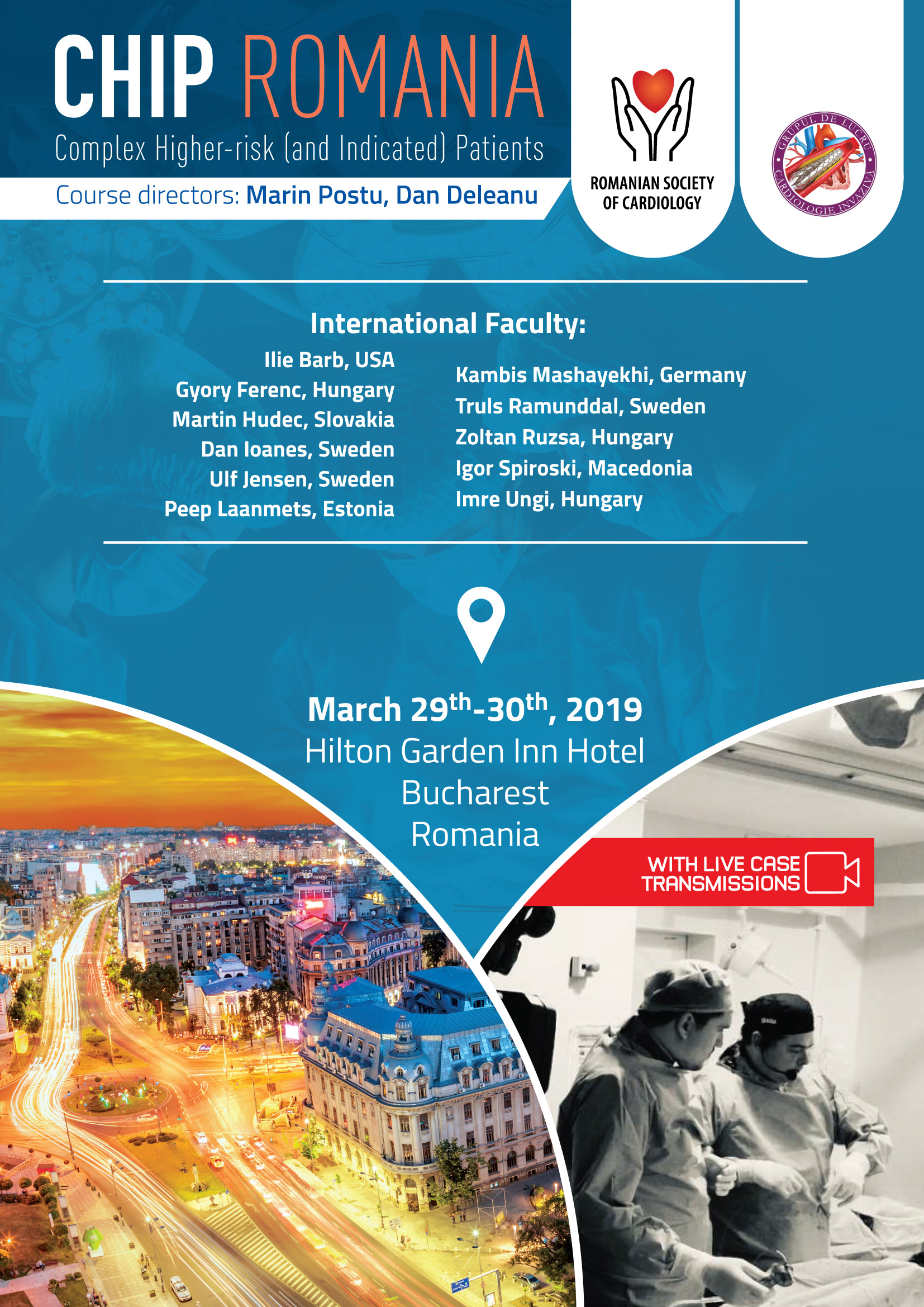 Curs organizat de Grupul de lucru de Cardiologie Interventionala al Societatii Romane de Cardiologie si creditat cu ore de Educatie Medicala Continua de Colegiul Medicilor din Romania. Directori de curs: Dr. Marin Postu, Dr. Dan Deleanu