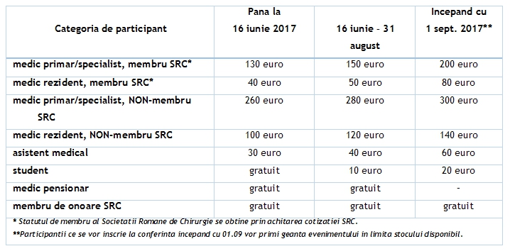 Pentru inscrieri online, trimitere rezumate si orice alte informatii suplimentare despre CNC 2017, va rugam sa accesati site-ul www.cnchirurgie.ro.
