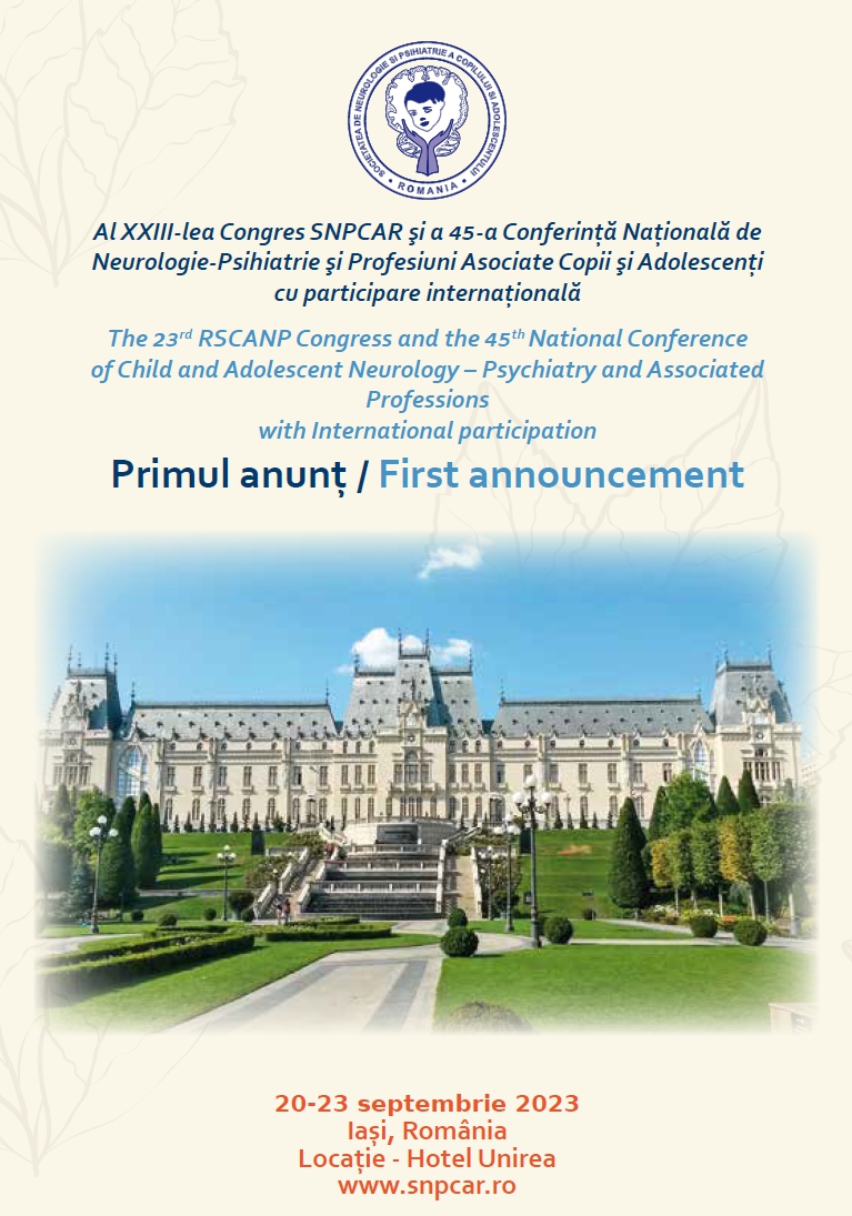 Avem onoarea de a vă invita să participaţi la Cel de-al XXIII-lea Congres SNPCAR şi a 45-a Conferinţă Naţională de Neurologie şi Psihiatrie a Copilului şi Adolescentului şi Profesiuni Asociate, cu participare internațională, o manifestare științifică importantă pentru specialitățile noastre, care se va desfășura în acest an aniversar în Iași. „Orașul celor 7 coline” reprezintă o veritabilă comoară națională, prin istoria și cultura pe care le deține.