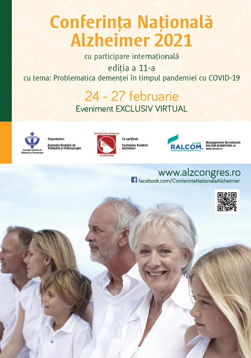 Am deosebita onoare de a vă invita la cea de-a 11-a ediție a Conferinței Naționale Alzheimer cu participare internațională, care se va desfășura online, în perioada 24 - 27 februarie 2021.