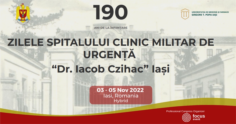 Ne face plăcere să vă invităm la Conferința Națională Zilele Spitalului Clinic Militar de Urgență “Dr. Iacob Czihac” din Iași, ediția a 2-a, ce va avea loc în perioada 03 -05 noiembrie 2022.