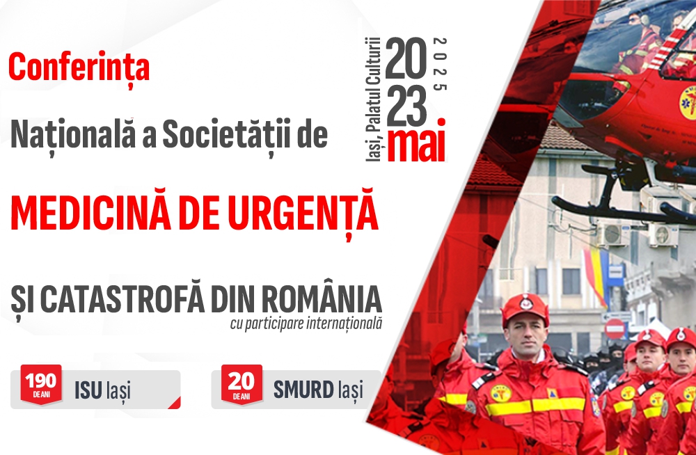 Vă invităm la Iași, în perioada 20-23 mai 2025, pentru a participa la Conferința Națională a Societății de Medicină de Urgență și Catastrofă din România, unde vom celebra 20 de ani de SMURD în Iași și 190 de ani de istorie militară.
