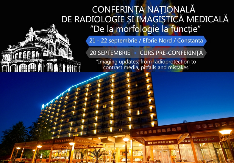 Avem bucuria de a vă anunța că Societatea de Radiologie și Imagistică Medicală din România (SRIM), împreună cu Societatea de Rezonanță Magnetică în Medicina din România și Societatea de Imagistică Musculo-Scheletală organizează la Hotel Europa, Eforie Nord "Conferința Națională de Radiologie și Imagistică Medicală", care reunește următoarele manifestări: