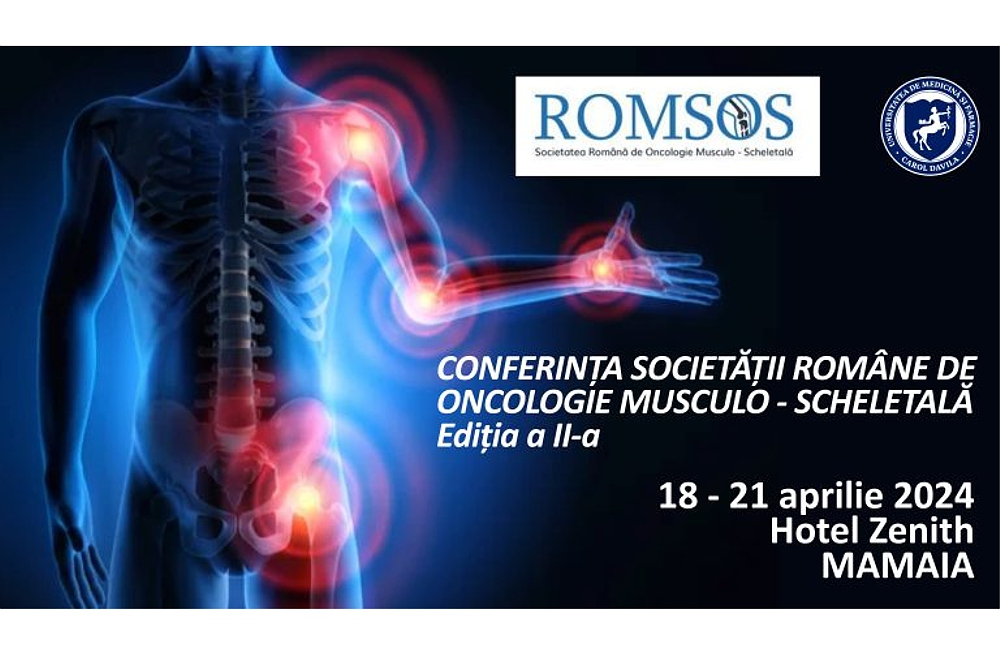Ne face o deosebită plăcere să anunțăm organizarea celei de a doua Conferințe a Societății Române de Oncologie Musculo – Scheletală, eveniment organizat de ROMSOS, societate afiliată la Societatea Europeană de Oncologie Musculo-Scheletală (EMSOS).