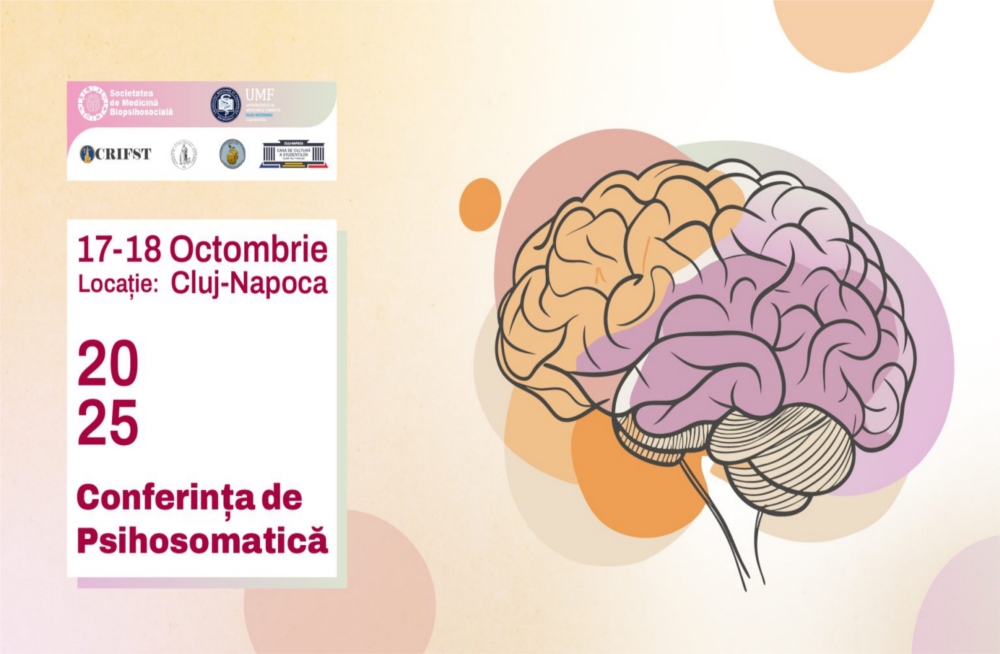 Societatea de Medicină Biopsihosocială are plăcerea de a vă invita să participați la Conferința de Psihosomatică organizată la Cluj Napoca, în perioada 17–18 Octombrie 2025.