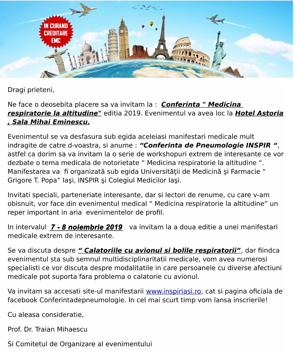 Afisari: 2456Conferinta medicala " Medicina respiratorie la altitudine ", IASI