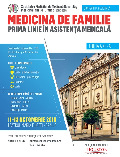 Detalii despre înscrieri și taxele de participare găsiți pe site-ul evenimentului http://medicidefamiliebraila.ro/ și pe www.houston.ro.