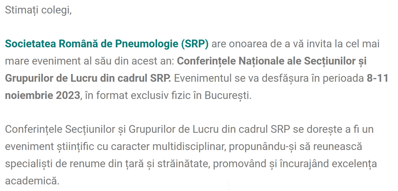 Conferintele Nationale ale Sectiunilor si Grupurilor de Lucru din cadrul SRP 2023