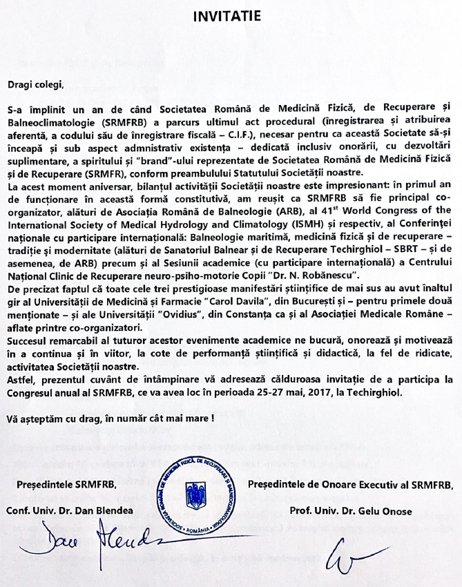 Congresul Anual al Societatii Române de Medicină Fizică, de Recuperare şi Balneoclimatologie (SRMFRB), Techirghiol