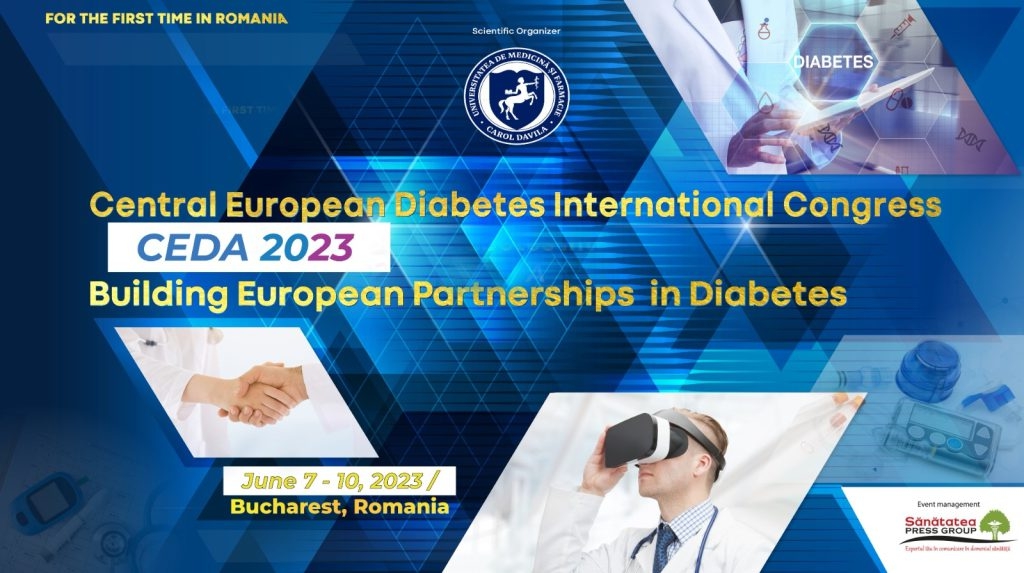 Afisari: 1321Politici publice şi aspecte ştiinţifice în domeniul diabetului vor fi dezbătute, în perioada 7-10 iunie, la Bucureşti, în cadrul Congresul Central European de Diabet – CEDA 2023, la care au fost invitaţi peste 600 de medici.