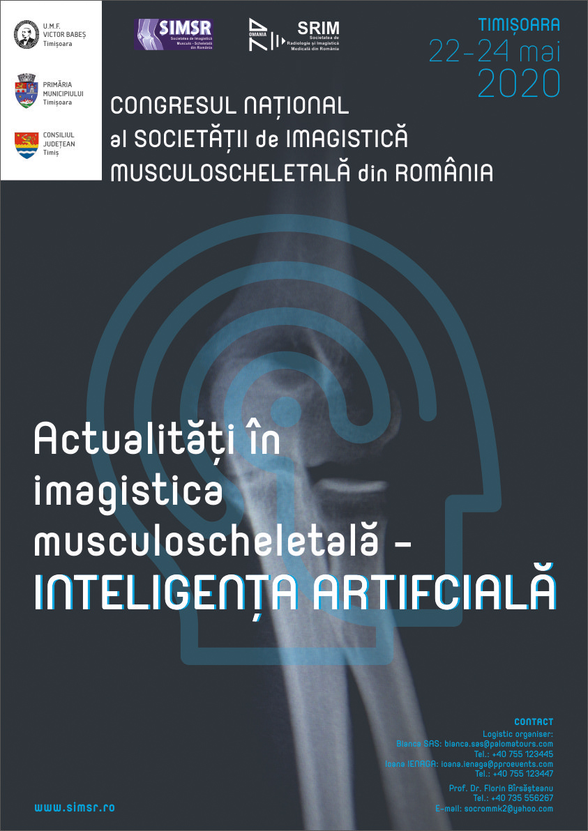 Avem bucuria de a anunța organizarea Congresului Național al Societății de Imagistică Musculoscheletală din Romania. Acesta se va desfășura în perioada 22-24 mai 2020 la Centrul Regional de Afaceri Timișoara.