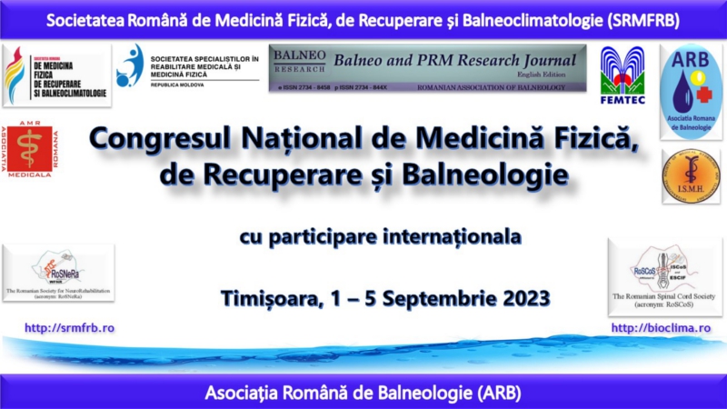 Societatea Română de Medicină Fizică, de Recuperare și Balneoclimatologie (SRMFRB) și Asociația Română de Balneologie (ARB) organizează la Timișoara, în perioada 1–5 Septembrie 2023, Congresul Național Anual de Medicină Fizică, de Recuperare și Balneologie