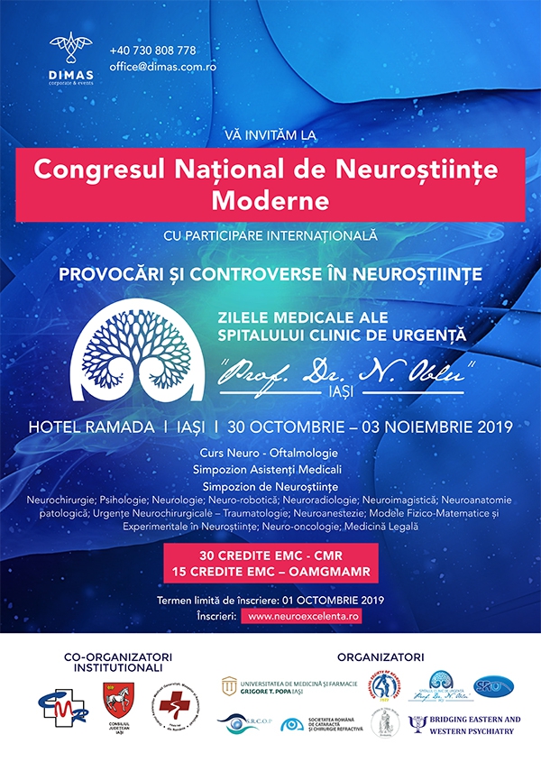 Congresul Naţional de Neuroştiinţe Moderne cu Participare Internaţională – “Provocări şi controverse în neuroştiinţe”, 2019