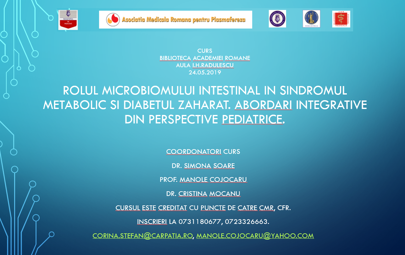Cursul 4 de Medicina Integrativa si Personalizata cu tema: ROLUL MICROBIOMULUI INTESTINAL IN SINDROMUL METABOLIC SI DIABETUL ZAHARAT. ABORDARI INTEGRATIVE DIN PERSPECTVE PEDIATRICE