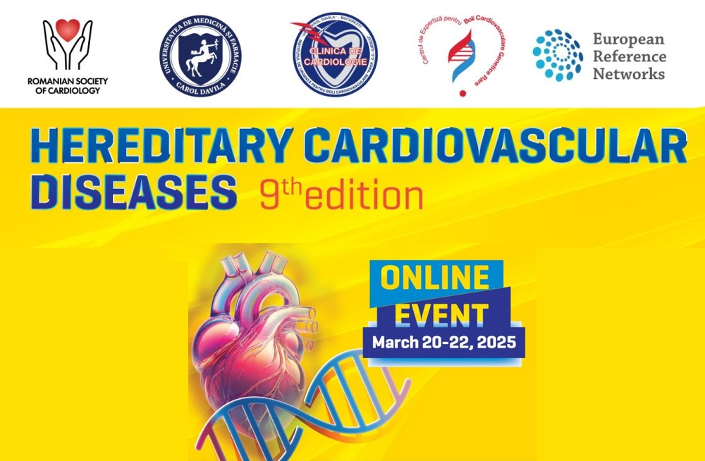 It is our special pleasure to invite you to participate at the new edition of the annual Hereditary Cardiovascular Diseases Course! The 9th edition of the event will take place between March 20-22, 2025, exclusively ONLINE! The course is addressed to all physicians from the specialties of cardiology, pediatric cardiology, medical genetics, internal medicine, family medicine. The scientific sessions will be held by national and international experts well renowned in their fields, with extremely interesting and new topics.